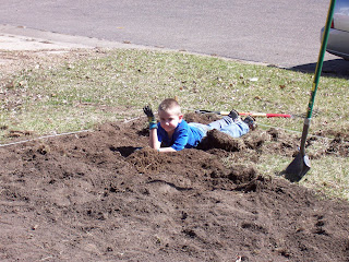 Micah and I finished breaking ground and getting out all of the sod. Now we just need to dispose of the sod someplace. Man I hate living in the city. I also need a wheelbarrow. I know I had one but I think Tim confiscated it for a construction project. Hopefully today or this weekend, I can get a fence up and that way I"m completely prepped for planting sometime in the next couple of weeks.